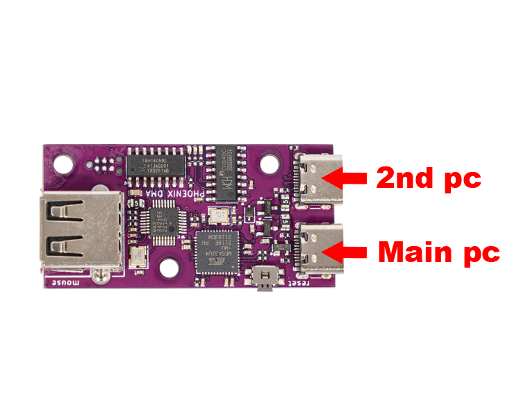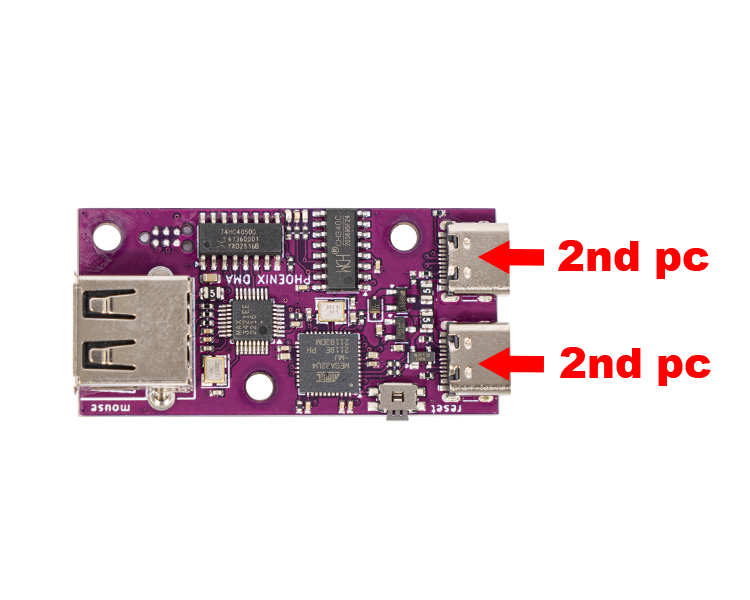 Using the provided cables or any usb 3.0+ type-c cable, plug the top right port into your 2nd computer and the bottom right port into your main computer.